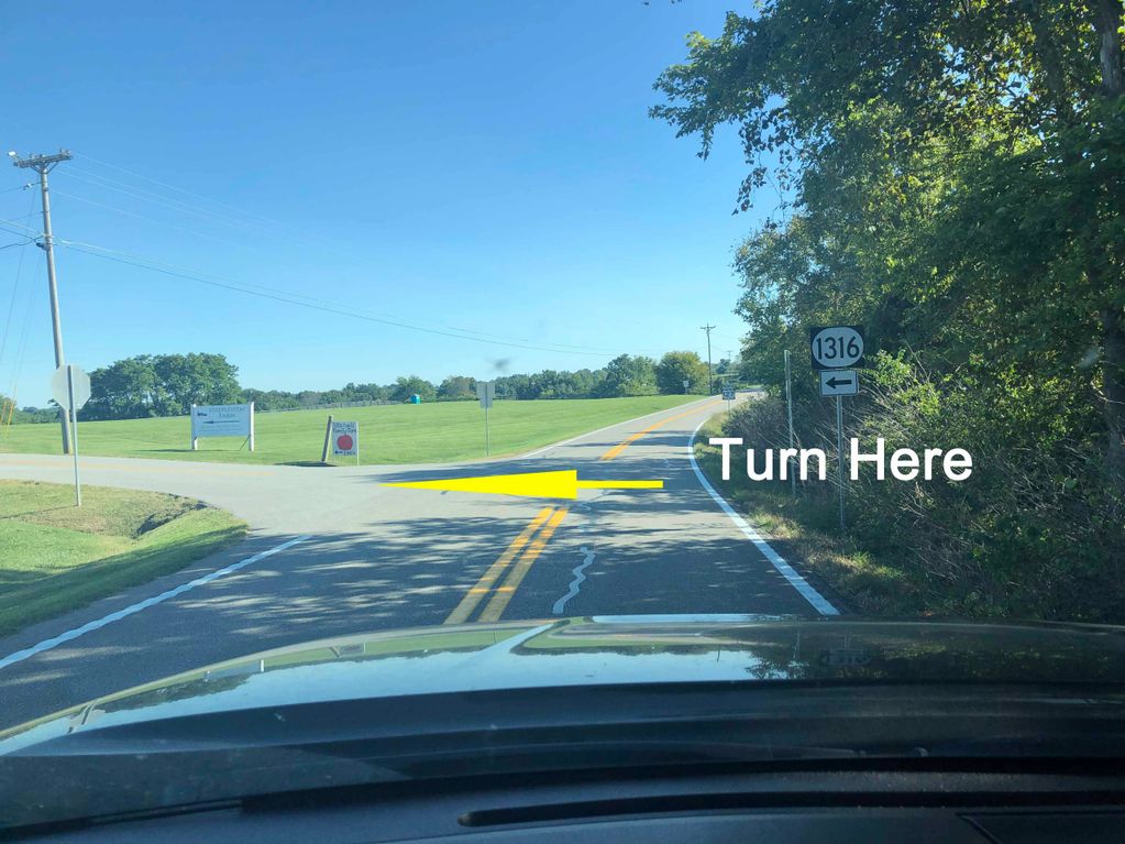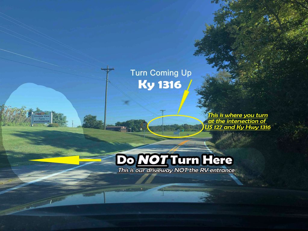 Immediately after turning left onto Ky 1316 South you will see a gravel driveway to your left.